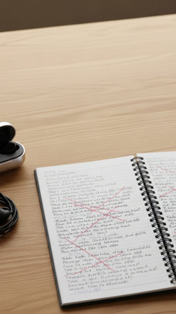 An eclectic collection of scattered papers and notes fills a wooden table, with various stationery items peeking out amidst the organized chaos. Late afternoon sunlight softly illuminates the workspace, highlighting the creative process at play in this dynamic and thought-provoking environment.
