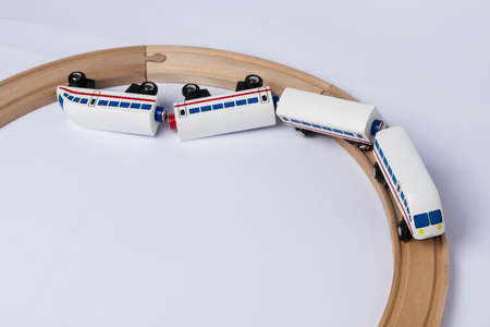 derail wooden toy train in top view horizontal image