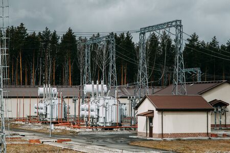 Power transformer substation. Electricity distribution station. Electricity distribution station.