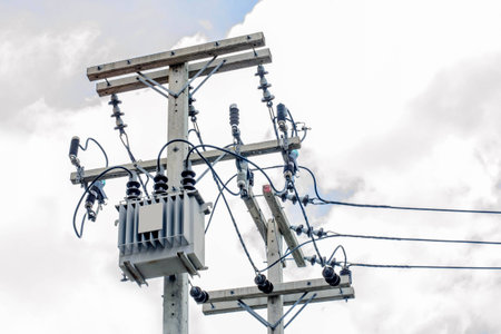 Transformer and power lines, selective focus point.
