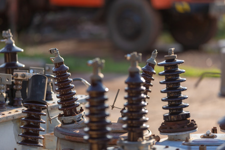 High voltage post. High voltage post. High voltage post with transformer.
