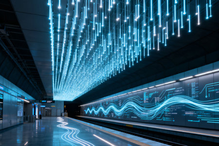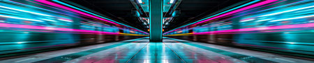 Futuristic neon subway system abstract AI generative art sequence