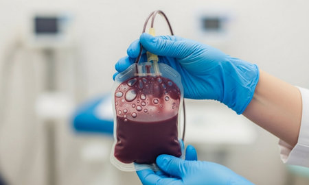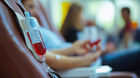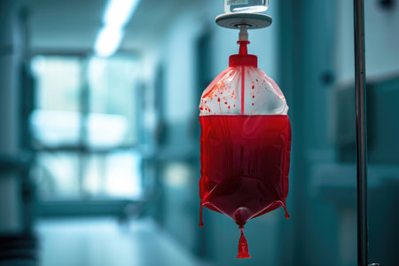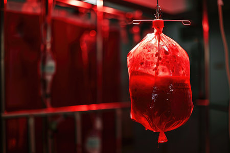 close-up of blood transfusion bags during, created with generative ai