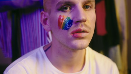 Direct Gaze: LGBT Individual with Pride Flag on Cheek