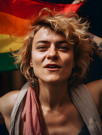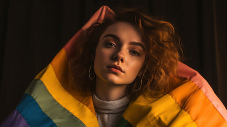 Portrait of a woman with Pride Month rainbow flag LGBT concept