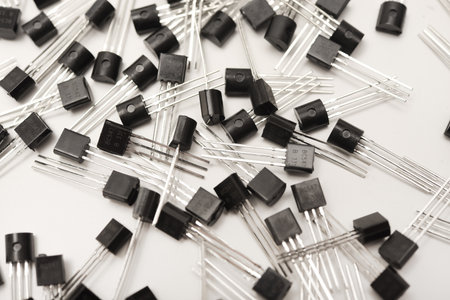 Semiconductor transistors and mosfets isolated on white background.