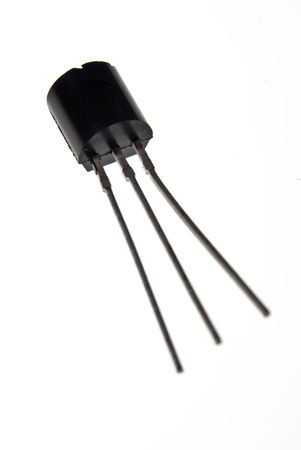 Transistor encased in plastic with 3 leads