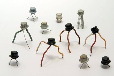 Old transistors on a white background. Electronic elements.