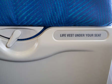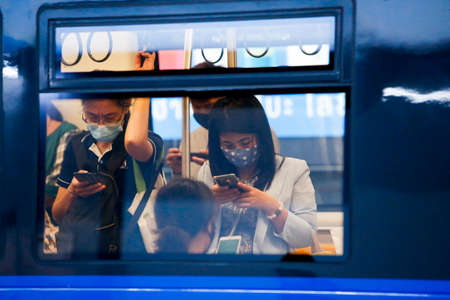 Bangkok, Thailand - 11 Apr 2020: Bangkok Airport Rail Link (ARL) information over the passenger door inside the train to Suvarnabhumi Airport station. Bangkok, Thailand.