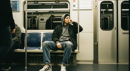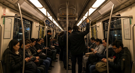 An AI generated illustration of A diverse group of people riding the subway together on their daily commute