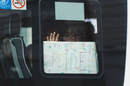 London / UK - 02/07/2022: Little girl in the van at London LGBTQ Pride Parade