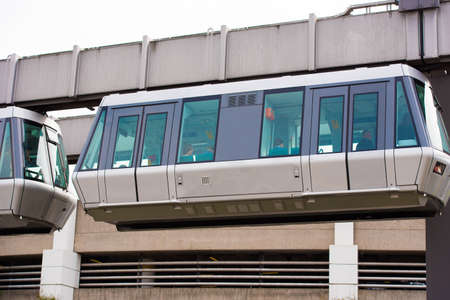 DUSSELDORF, GERMANY - JUNE 8, 2017: Sky-Train funicular in airport. Copy space for text. Close-up
