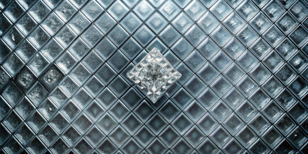 A sleek glass tile background with a frosted texture and subtle light reflections. The modern, minimalist look adds a sophisticated touch.