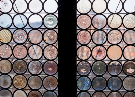 Bright multicolor texture of the glass on the beautiful and brilliant stained glass.