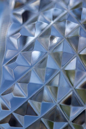 Macro abstract art background design of beautiful defocused lead crystal glass texture with hand cut diamond facets