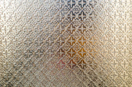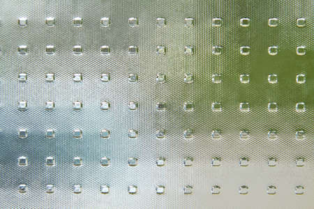 corrugated glass. Abstract pattern on a window or glass surface. Reflection and refraction of light. Protective opaque film glued to the glass.