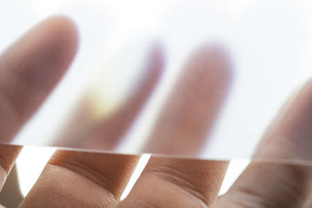 transparent white film close-up in a man’s hand