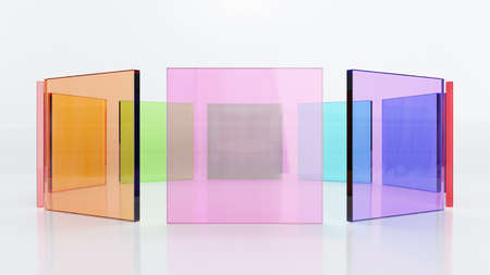 3d rendering illustration, Colorful glass square sheet align in circle shape on white background. image for presentation.