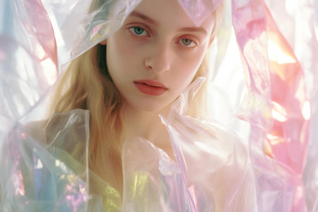 Dreamlike Portrait of Woman Behind Transparent Plastic