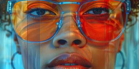 Close up portrait of a beautiful African American woman in sunglasses.