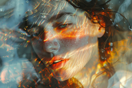 Artistic double exposure light leaks creating a vintage and nostalgic atmosphere