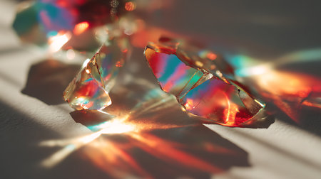 Colorful light refraction through frozen prisms creates stunning visual effects