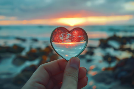 An artistic photograph that adds a fresh perspective to travel blogs, lifestyle articles, or creative visual projects | This image offers an immersive experience, where the warm hues of a sunset are encapsulated in a small glass sphere held between fingers. The inverted reflection within the sphere reveals a serene beach scene, with silhouettes of people gathered to witness the day's end. Skies painted with orange, pink, and blue gradients provide a dramatic backdrop to this tranquil moment. The defocused crowd in the background creates a sense of community and collective appreciation for nature's spectacle. The hand's gesture is gentle, giving the impression that the moment is as delicate as the glass bauble holding it. Precision and intricacy are evident in the way the sphere's surface reflects and intensifies the sunset's beauty, transforming a familiar sight into something magical | This striking visual can enhance travel and tourism marketing materials, or serve as a metaphor in discussions about perspective, reframing life experiences, or finding beauty in small things. The photo could also be utilized in educational content explaining optics or the science of light, resonating well with themes like reflection and refraction | A high-quality image of a sunset seen through a glass orb with soft-focus background that brings a dreamlike quality to the scene, allowing for ample overlay space, suitable for various artistic and editorial applications