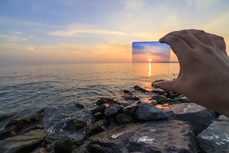 optical effect with a smartphone in wintry beach