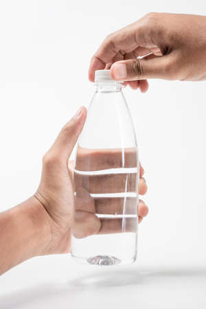 bottle of water on a white background, close-up.