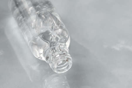 Empty Clear Plastic Bottle Standing on White Background.