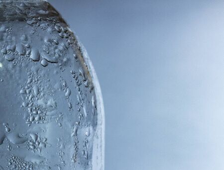 misted bottle on blue background close-up with condensate and drops