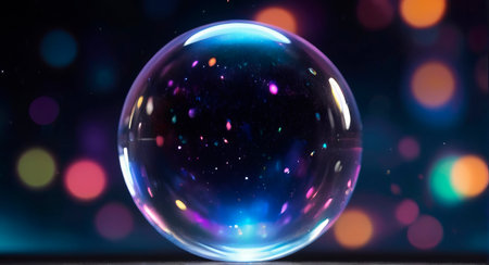 Elegant floating glass spheres reflecting multicolored lights generative ai