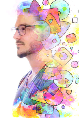 Paintography. A portrait a young man with glasses combined with geometric shapes