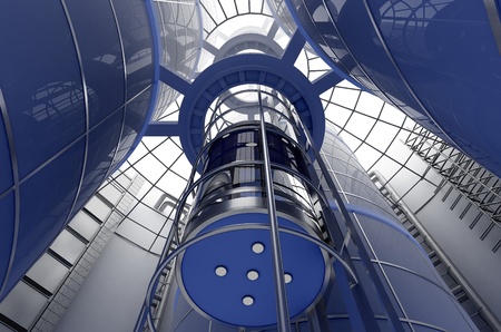 design modern architecture inside metal glass stairs elevator