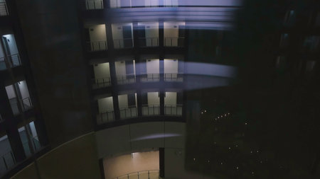 Modern Architectural Design Featuring Beautifully Lighted Balconies Illuminated at Night. Media