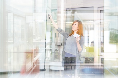 Transparent windows of office building, may be used as background
