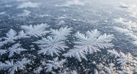 Closeup or macro of ice crystals of frozen water in winter season