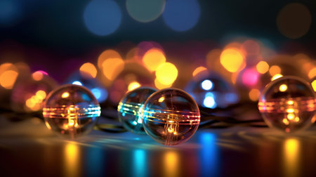 Glowing spheres in an abstract background creating a magical atmosphere with glittering particles
