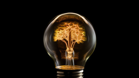 Close up of a light bulb sparkling, symbolizing creativity, energy, and innovation on dark background