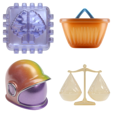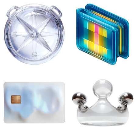 A collection of translucent abstract shapes in various pastel colors and forms. Clear details and vibrant colo...