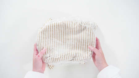 The texture of the transparent polyethylene package. a surface covered with multiple layers of cellophane.