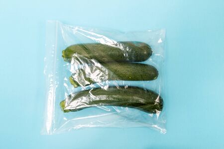 fresh organic vegetable zucchini from the grocery market on a plastic bag.