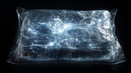 A black background holds crumpled polyethylene wraps for an overlay effect.