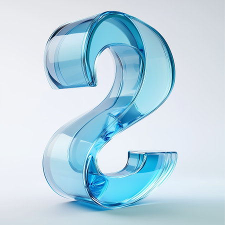 A translucent blue number two in a modern design against a light background, showcasing artistic typography and color