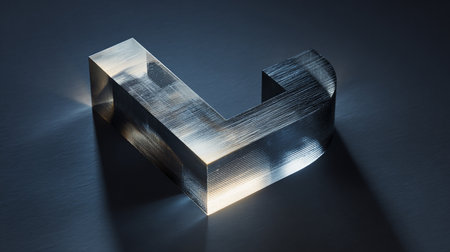 3d illustration of metal letter v over metallic background, digitally generated image.