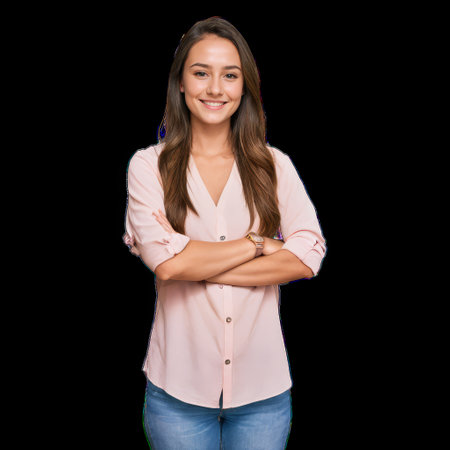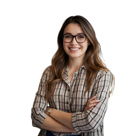 Happy Smiling Woman with Crossed Arms Isolated on Transparent Background