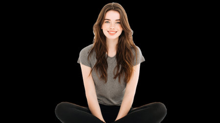 Young woman smiling and sitting cross legged on transparent background