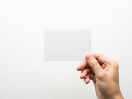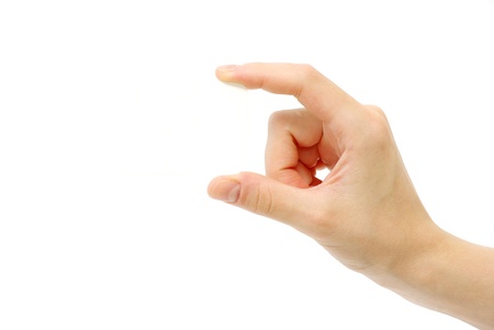 Hand holding blank card isolated on white background