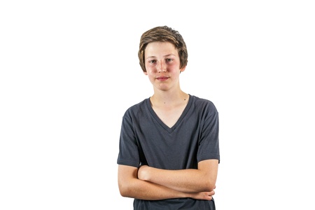 happy joyful boy enjoys life, isolated on white