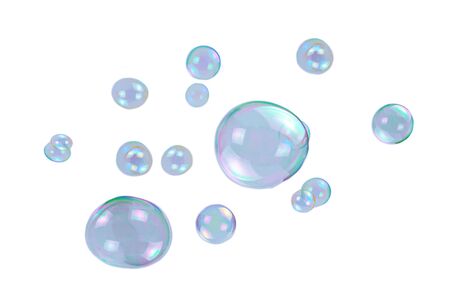 Soap bubbles isolated on a white background. Copy space.